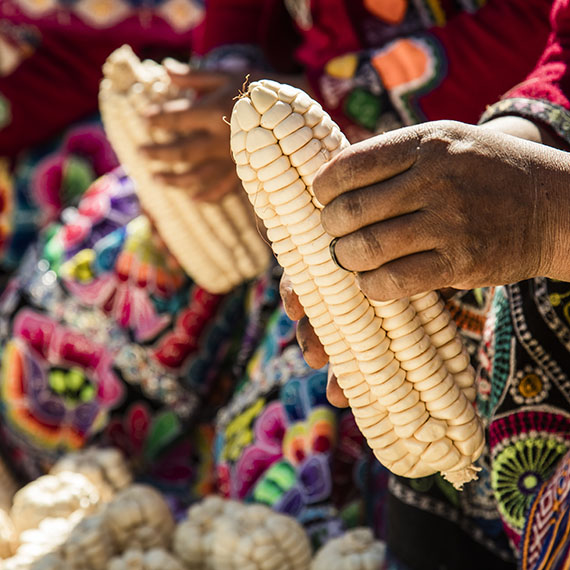 The culture around production of this type of corn has been linked to daily life in the Sacred Valley since early times. The variety grown is the Giant White Corn, a unique variety in the world due to its exceptional characteristics and size. Domesticated since Inca times, this corn has been adapted to the unique conditions of this valley in such way that it only grows here, beign awarded the Denomination of Origin (DO) badge in 2005 because of this.